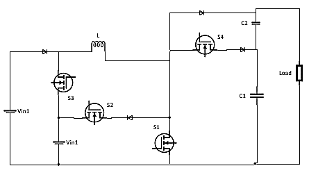 The dual input single output (DISO) DC-DC converter shown in Figure 3 is presented in [1]. It is a DC-DC converter without a transformer. The converter is composed of one inductor, two capacitors and four switches.