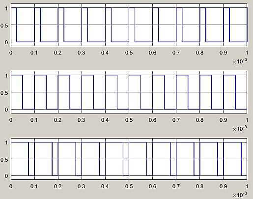 It can be seen from Figure 8 that the switching frequency has been altered a bit for all the three switching signals to a ratio of 0.25%.