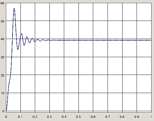The final output of this converter is displayed in Figure 9, which reaches a maximum of 57V in the overshoot and later on stabilizes at 39V. The time taken for the converter to stabilize in 0.3s.