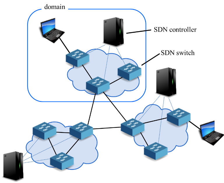 - Each SDN controller generates flow entries based on the received route information and installs them to their corresponding SDN switches.