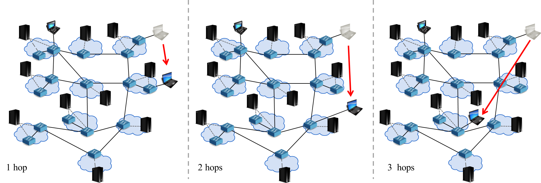 - The number of inter-domain hops between the MN and the CN: 1, 2, 3