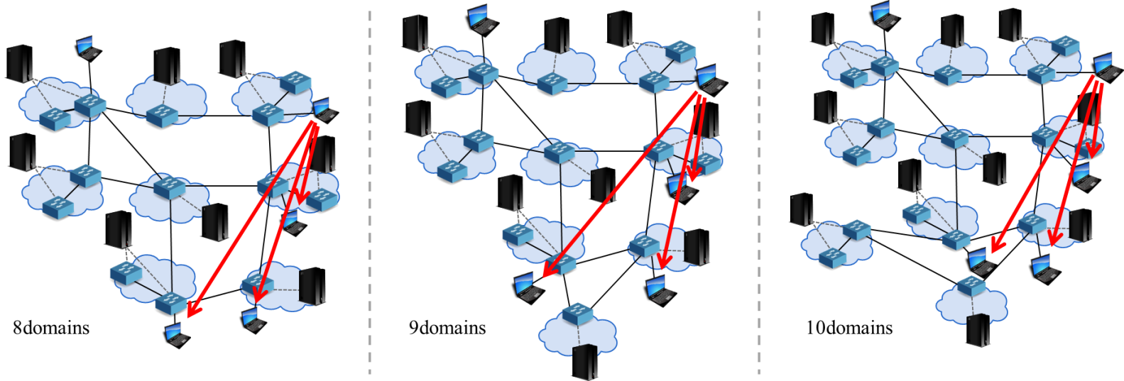 - The number of domains consisting an experimental network: 8, 9, 10