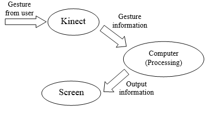 Gesture recognition was accomplished with the help of the Kinect, which is a line of motion sensing input devices that includes a 2D camera along with a 3D scanner system called Light Coding which employs a variant of image-based 3D reconstruction that requires the work of an IR projector and IR camera.