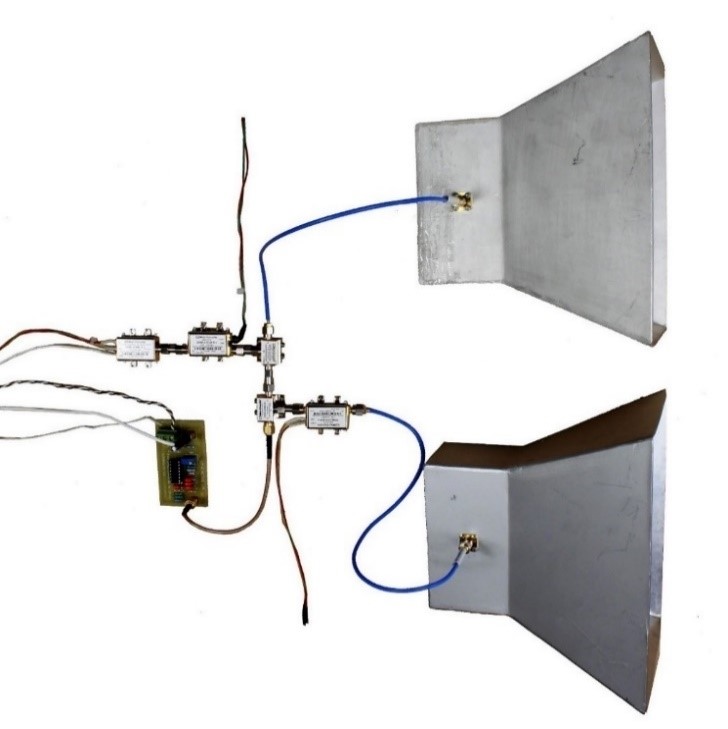 This range of the system is greatly increased by using high power amplifiers and employing horn antennas. During the tests performed, the antenna was directly interfaced with the transceiver that enabled us to transmit 794 mW of power or 29 dBm EIRP. That much power would greatly increase the penetrating and distinguishing ability of the antenna. Further experimentation, research and analysis will determine exactly how much power is to be used in real life scenarios.