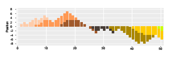 Every color transition represents the change to the subsequent future. Noticeable is the periodic process in which no future is specifically preferred. As every contract is applied for one month, the number of trades is directly dependent from the trading frequency during this period. There are always not more than two different futures in the portfolio. This is induced and without exception, because overlaps directly cause future rollings in this case.