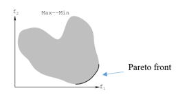 The solution of multi-objective optimization models need to be a trade-off between objectives. Therefore, patterns of best answers derived from multi-objective problems are especially a group of best solutions, while each of the answers is the best answer on its own or if there is not any other answer that can dominate (non-dominated set) it as called Pareto front. As can be seen in Figure 4 [25]: