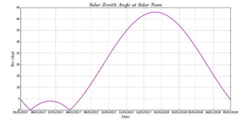 Figure 7. Yearly evolution of the solar zenith angle at solar noon.
