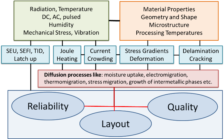Figure 1. Reliability, quality and layout dependence of some physical failures in the devices and components.