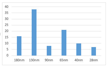 The quantity of products from the different technology nodes is shown in Figure 2. It is found, that a big portion of the products is still manufactured in 180 nm and 130nm technology node [4].