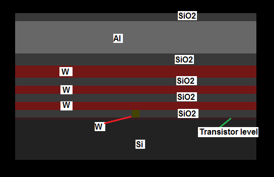 In Figure 6 the reaction after neutron radiation is shown. It was found that a lot of reactions occur in the Tungsten interconnects. This corresponds to observations in [17].
