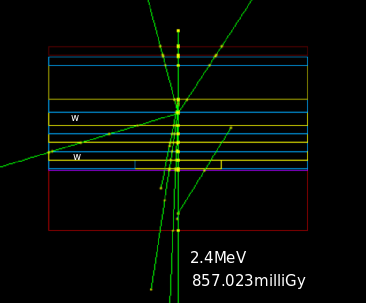 It has to be remarked that GEANT4 is highly complex and requires a long training period and knowledge about the physics and coupling. All user interfaces have to be programmed for the special needed cases. This makes it’s use for a fast application uncomfortable.