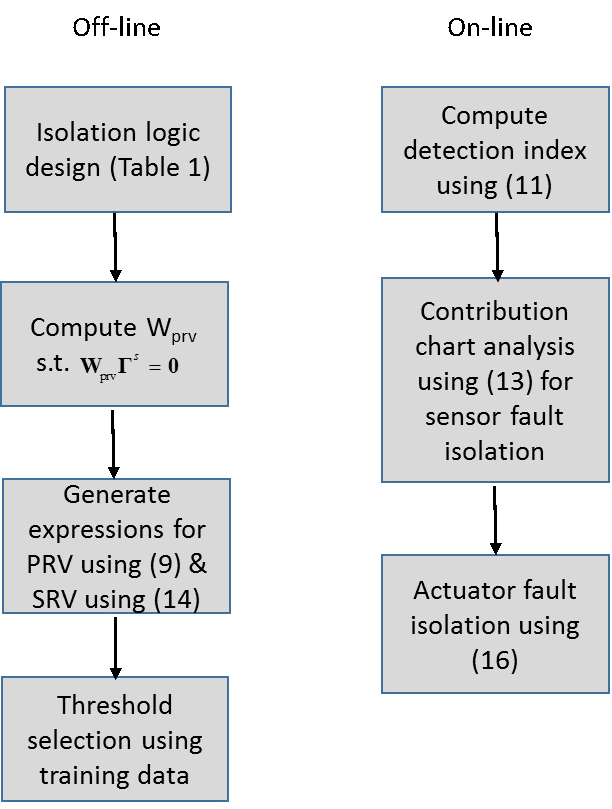 At the end of this section, hereafter we summarize the steps to perform detection and isolation of sensor and actuator faults: