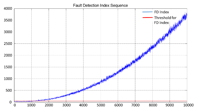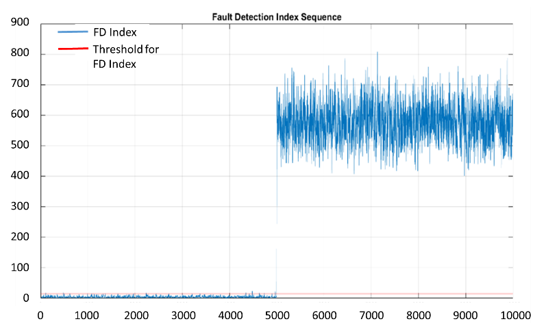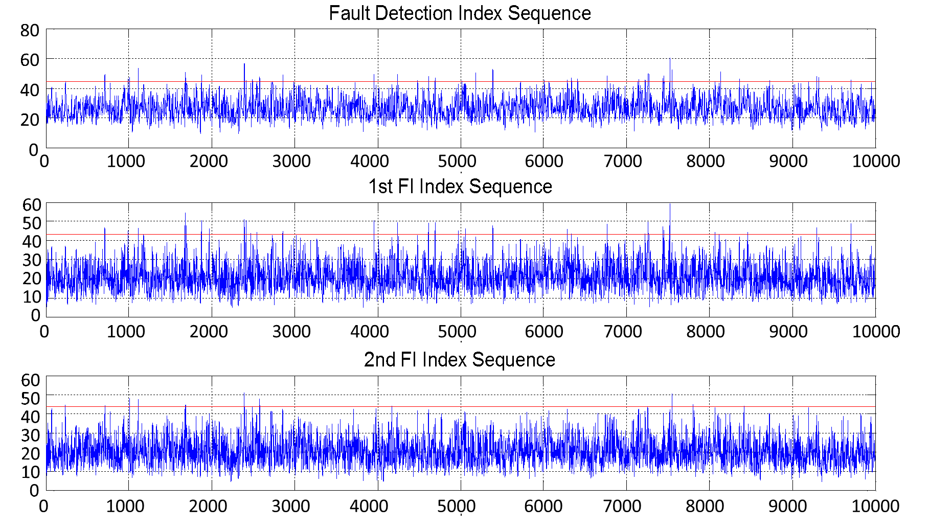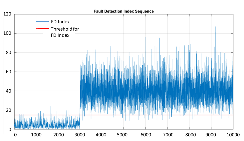 as the fault detection index, which follows a distribution with degree of freedom [22]. With a pre-determined confidence limit, if exceeds the limit, it indicates that some sensors and or actuators are faulty. Otherwise, everything is normal.