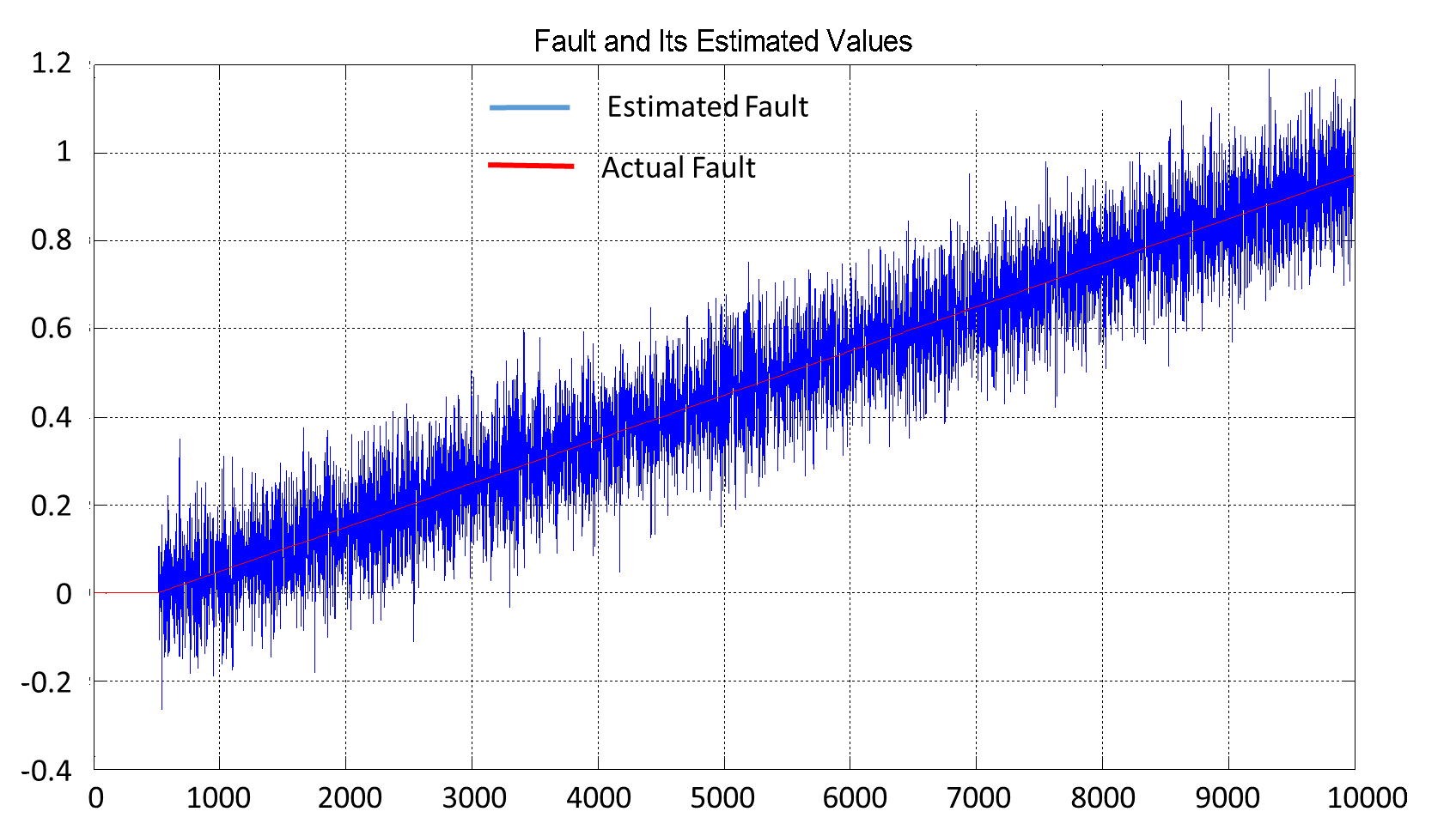 With estimated fault magnitudes, one can correct measurements of the faulty sensors. The measurements in faulty sensors are affected both by and In order to get the corrected measurements in faulty sensors, one can design a Kalman filter,