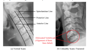 Figure 2: C-Spine Radiographs (a) Healthy (b) Fractured