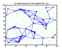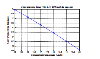 - Analysis and simulation of factors such as the number of mobile sensors, the convergence time and the sensor transmission range leading to choices of minimizing power consumption.