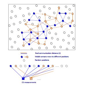 Energy efficiency is the most important issue for mobile sensor networks (MSN) that can be useful for measuring data in many applications including environmental monitoring, event detection, intrusion detection, etc. These networks are constructed from sensors, control algorithms and other dynamic factors which depend on specific purposes or application scenarios [1, 2]. We define the vector X = [x1x2…xN ]T to represent all sensor readings from the locations to be observed. These readings are typically highly correlated and compressible and could be an object for energy saving.