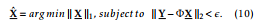 The restricted isometry property (RIP) of the sparse binary matrix has been studied in [23] where it is shown that the matrix can satisfy RIP and therefore can be used as an efficient measurement matrix. This matrix (ΦM×N ) can perform as well as a full Gaussian matrix for the CS recovery process. is set as <k e k2. The recovery algorithm is addressed as![]()