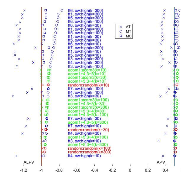 caught by all 36 AT-APV being smaller than 0.5, and in 31 experiments is also confirmed by AT-ALPV being smaller than -1.