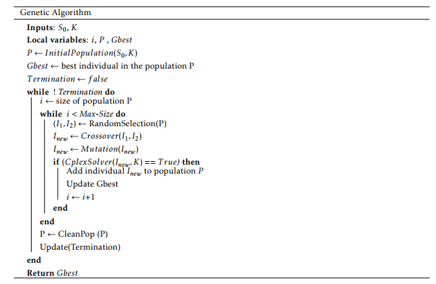 In the next section, we show how to solve jointly and efficiently sub-problems (1) and (2). In the first step of our proposition, we used the genetic algorithms to explore different potential solution areas for the decision vectors (y,n). Each solution (y,¯ n¯) is then evaluated in the second step by solving CMFP problem.