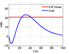 (B) It was required the computation of the time interval at which the voltage at the capacitor terminals was greater than of the generator voltage maximum value. For this purpose, it was suggested the bisection method with a tolerance of .