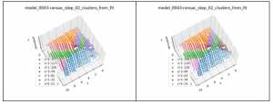 The classic RANSAC (FB81 according to [65]), as it was already mentioned above extracts primitives from point datasets [62]. The high-quality geometric instances extracted are a subject for further polygonal surface reconstruction of various features with 3D geometry. Nonetheless there are still no proved evidence that either Hough, or RANSAC optimizations have been successfully applied for modeling urban areas [68], but even optimized RANSAC methods may lead to the numerous false plains [37]. Probably it would be right to affirm that RANSAC is that approach, which has faced almost the greatest number of its optimizing solutions among other point cloud detecting / segmenting methods. Even early optimizations of this algorithms provided the removal of up to a half the outliers resulted from a given data set [90]. Probably the best overview of this algorithm improvements together with one more original optimization has been given in [63].