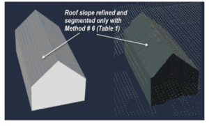 It is a commonly known fact for the data driven approach, that most critical errors occur upon the determination of a total building roof outline, when trees are placed near a building box [62, 64, 66-68]. To avoid this issue various algorithmic approaches have been modified independently based on the detection and outlining of planar facets, e.g. [46]. A facet plane is normally determined by the point clustering procedure. A roof scheme is outlined by a connected component analysis. A key related assumption is that all the geometric model boundaries for roof segments are either parallel, or perpendicular to the main building disposition.