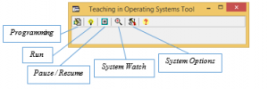 The authors propose a newly-developed by them OS teaching system named TOST (Teaching in Operating Systems Tool). It has been created in response to the requirement of the educational tool to be straightforward to use, yet powerful enough, allowing the students to not only experiment with OS settings, architectures, and strategies but also to create and run any concurrent programs they want. This imposes the need for TOST to be developed as an integrated environment consisting of a code editor, a high-level language compiler, a virtual processor emulator, an interface for setting and modifying OS parameters, and a visualization of the content of the main OS tables.