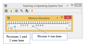 In contrast, the visual tools from the second group (SOsim [7], SchedulerSim [8], CPU Sim [9]) are easier to use and convenient, however, they present rather restricted and pre-specified abilities (e.g. simulation of just one OS module or subsystem). For example, the TROJAN [10] simulator helps in teaching multiprocessor organization, the cache utilization, and the network traffic issues, while SIME [11] visualizations focus on memory management, but without shared memory concepts. Additionally, some of these systems (Proc OS [12], Alg OS [13]) do not connect theoretical concepts to a running code. Others present simulations of only one example problem (e.g. the Producer/Consumer problem [14]).