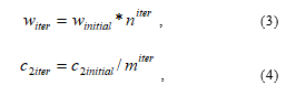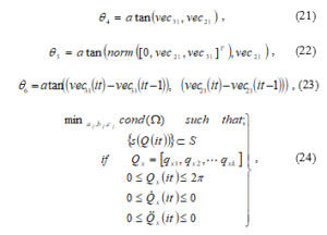 where iter is the iteration number, and n and m are coefficients. The coefficients n and m can be determined by setting iter to the maximum value. Robot configurations have complex dynamics described by highly coupled and non-linear, second-order differential equations, there are possibilities of numerous strong local minimizers in the solution space.