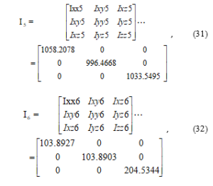 The dynamic parameters of a 6DOF manipulator was estimated in two stages, the last three links corresponding to the wrist were first estimated followed by the first three links corresponding to the arm of the manipulator. A numeric technique for reducing the observation matrix to a minimum linear combination of identifiable parameters was implemented as described in [40] where three empty matrices were created corresponding to identifiable parameters, unidentifiable parameters, and identifiable parameters in linear combinations. Understanding that the rank of the observation matrix is equal to the number of identifiable parameters, the norm of each column of the observation matrix is determined independently. The columns with zero norms represent coefficients of unidentifiable parameters and are moved to the matrix of unidentifiable parameters, else it is added to the matrix of identifiable parameters. Note that the initial rank of the empty matrix of identifiable parameters is zero, if the newly added column does not increase the rank of the matrix of identifiable parameters, it is moved to the matrix of identifiable parameters in linear combination. The eMuPSO was used to select the trajectory that best optimizes the observation matrix. Removing unidentifiable parameters from the observation matrix increases estimation accuracy. In the first estimation stage (wrist), out of the 30 unknown parameters at the wrist, 15 were independently identifiable, 7 were identifiable in linear combination, while 8 were unidentifiable. Out of the 7 parameters that were identifiable in linear combination, it was observed that for most elite particles, 5 were identifiable with lower errors. The 15 independently identifiable parameters include Iyy4, Ixz4, mx5, Ixx5, Iyy5, Izz5, Ixy5, Ixz5, Iyz5, mcx6, mcy6, Iyy6, Izz6, Ixz6, and Iyz6. The 7 parameters identifiable in linear combination include mcy4, mcy5, mcz5, mm6, mcz6, Ixx6, and Iyz6. It was found that Ixx6 and Iyz6 were identified with very large errors for most elite particles. In the second estimation stage (arm), 20 parameters were independently identifiable, 2 were identifiable in linear combinations while 8 were unidentifiable. All parameters were identified with little errors. The 22 identified parameters include mcy1, Iyy1, mm2, mcx2, mcy2, mcz2, Iyy2, Izz2, Ixz2, Iyz2, mm3, mcx3, mcy3, mcz3, Ixx3, Iyy3, Izz3, Ixy3, Ixz3, Iyz3, Ixz1, and Ixx2.