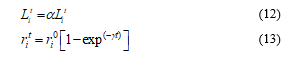 To keep balance between exploration aspect and exploitation aspect during the search process, loudness Lt, and pulse emission rate ri should be updated only if the candidate solution is improved as the iterations proceed. They are updated as following [2,10]: