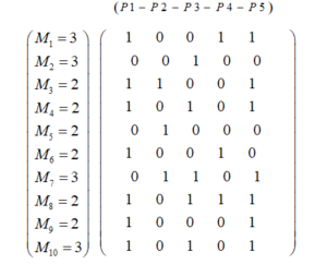 Figure 1 below, illustrates an example of a problem with an advertising campaign optimization. The matrix represents a solution S|C|x|P| concerning 5 products to offer to 10 customers, so as to optimize the Return on Investment by taking into account business constraints (maximum products to offer for each customer, fixed cost and budget for each product). In summary, this figure represents the offers to be adopted by each customer. The first column on the left, represents the 10 customers who are the subject of the campaign with the maximum product values to offer to each Customer. The first line at the top represents the different product offers with the fixed cost of each product and the budget allocated during the campaign. the values 1 means that product j is offered to customer i during the campaign and 0 if not.