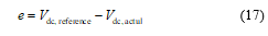 For the usage of the fuzzy rule over the PI controller in close loop filter, the dc voltage signal is compared with reference signal and reference error will be produced as follow [18]: