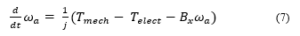 where, Bx is damping coefficient, ωg is angular speed (rad/sec), Telect is the electromechanical torque (Nm),Tmech is the aerodynamic torque and J equivalent rotational inertia of the generator (kg-m2)