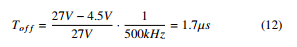In realty, the minimum Ton value won’t be zero, but, from (3), for a Vin = 27V it will be about 0.8µ s.