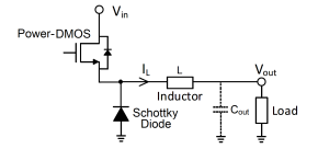 A Buck DC-DC converter is a device which in principle allows to convert a given input voltage to a lower output voltage by turning on and off a Power-DMOS, able to withstand to high power. In the application at stake from [4.5,27]V are obtained 4.5V in output by controlling the current, IL, flowing into the load. A simple scheme of a Buck converter is given in Figure 1.