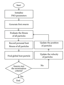 The algorithm develops a population of particles each of which are a viable solution for the problem. Initially each particle is assigned a random position, velocity and objective function, Xi, Vi and Fi respectively. The evaluation is carried out using positional coordinates and population size as the input. Each particle has a follow up of its position and the best value acquired so far and is stored in Pbest. . In the meantime the overall best value produced so far by any particle is stored as Gbest.