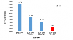 Figure 1: Profile of burnout syndrome among primary school teachers (n = 330) in Wazzane, 2017/2018.