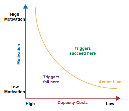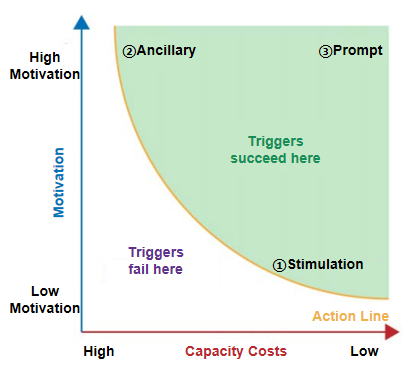 In 1930, Harvard psychologist B.F. Skinner created a Skinner box experiment to study how rats respond to rewards. In a box with a control lever, the rats were given food to drop whenever they pushed the lever, a reward that led to the rats quickly learning the skill of pushing the lever. Skinner speculated that if the rewards were designed well, human behavior could be guided by what is now known as Behavioral Design. Professor B.J. Fogg of Stanford University applied behavioral design with computer software and the Internet to provide theoretical support for studying user behavior [31]. Fogg believed that behavior is influenced by motivation, capability cost, and triggers, i.e., the Fogg Behavioral Model (shown below) was produced. The Fogg Behavioral Model shows that the occurrence of behavior needs to satisfy the three critical points of motivation, capacity cost, and triggers, which are favorable conditions for the occurrence of a behavior.