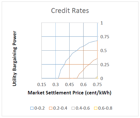 Figure above shows a basic simulation when utility’s bargaining power (P: vertical axis) changes from 0 to 1, and market price (MSP: horizontal axis) changes from 15 to 75 cents per kWh.