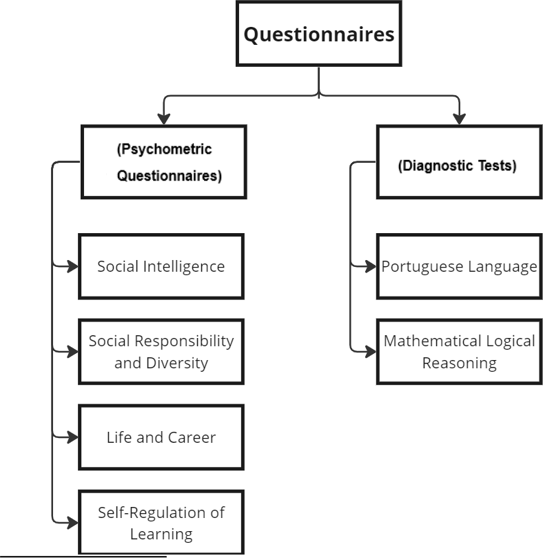 The psychometric questionnaires were constructed using the Likert Scale, discussed in Section 3.1, and subjected to a statistical analysis to aim to validate their effectiveness in mapping the correct profiles based on population analysis. The diagnostics were developed by the specialized professionals in pedagogical intervention.
