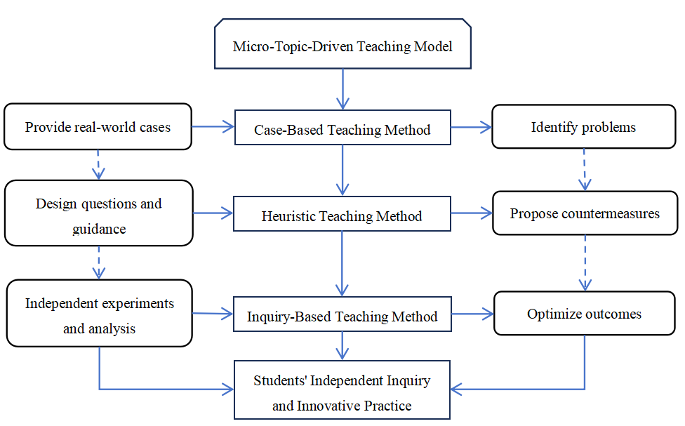 By structuring learning around specific, real-world problems, the micro-topic model enables students to engage in research-driven inquiry. Initially, problem-based cases ground their investigations in authentic contexts, followed by heuristic strategies that stimulate critical thinking and guided exploration. Finally, inquiry-based activities allow students to validate and refine their proposed solutions through systematic research. This sequential and integrative approach transforms students from passive recipients of knowledge into active explorers and problem solvers.