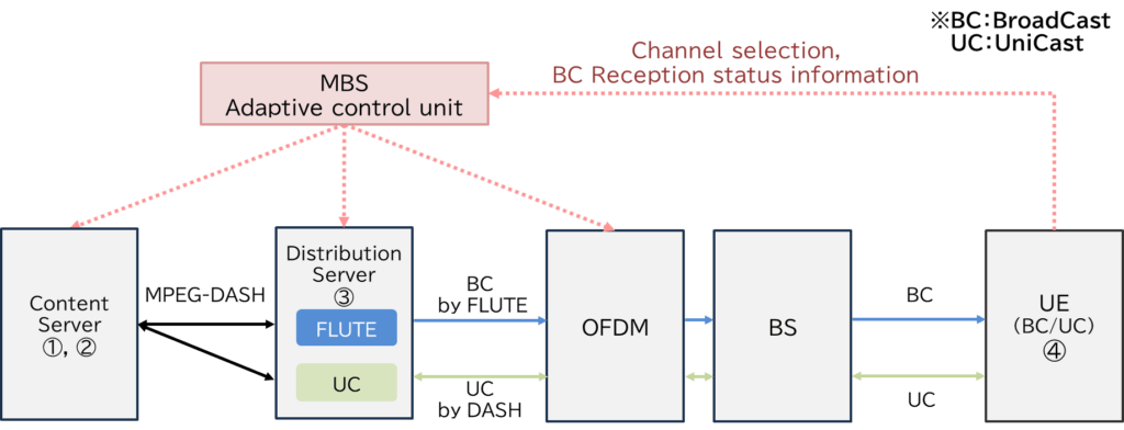 Fig.1 shows the fundamental structure of the adaptive MBS, which adds the following four functions to the MBS defined by 3GPP.